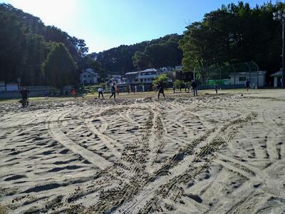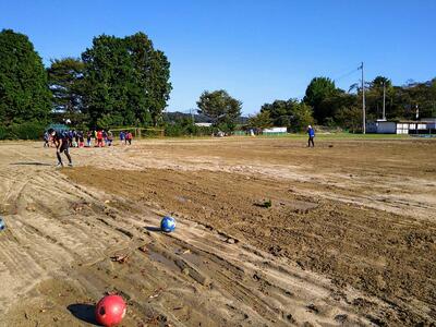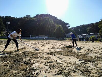 校庭を利用している「湯本キッカーズ」さんが台風後のグランドを整備して下さいました。