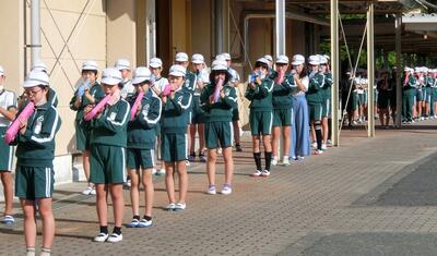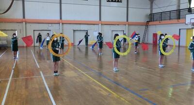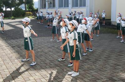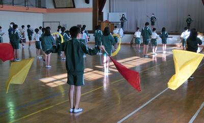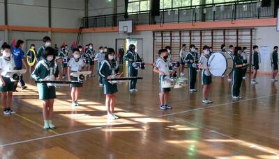 5・6年生は、朝の時間に鼓笛の練習を行っていました。密を避け、6年生は体育館、5年生は外で音を合わせます。