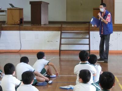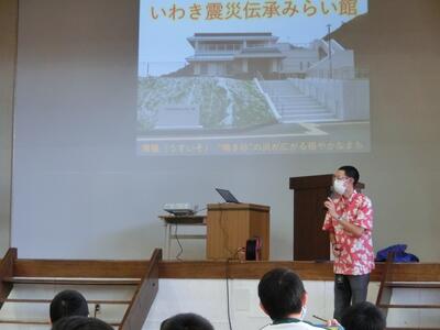 4年生は、「いわき震災伝承みらい館」の語り部の方をお招きし、震災についての話を聞きました。命の大切さや命を守る行動について、真剣に話を聞いていました。