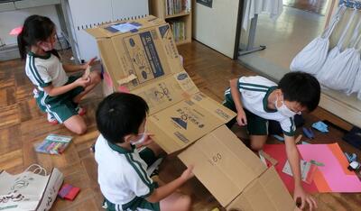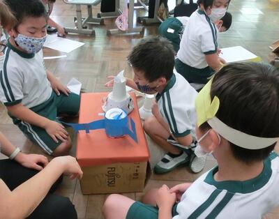 2年生は、生活科で「おもちゃまつり」の準備です。いろいろなアイディアを生かして作っていました。