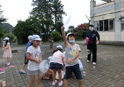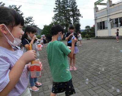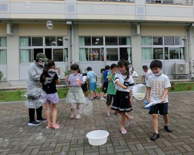 1年生は、しゃぼん玉遊びです。とっても楽しそうです。