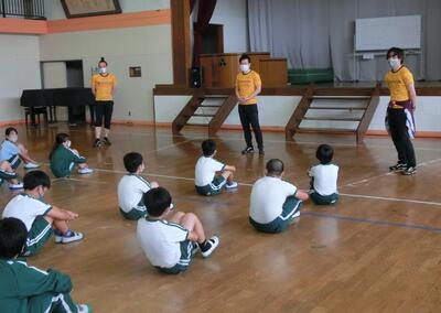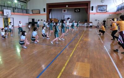 6年生は、おでかけアリオスの表現運動ワークショップ「んまつーぽす」の第2弾を行いました。1回目はリモートでしたが、今回は一緒に運動することができて、とても楽しく表現運動を行うことができました。