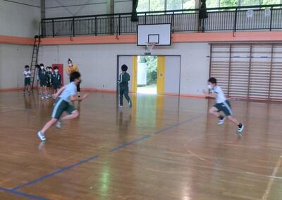 準備運動を兼ねて、素早い動きで交差しながら走ります。