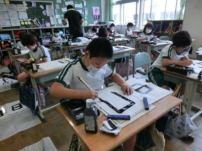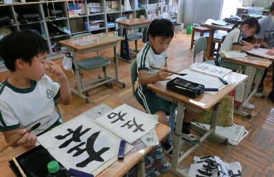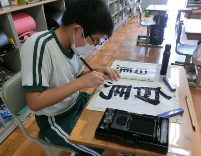 書写では、毛筆の学習です。