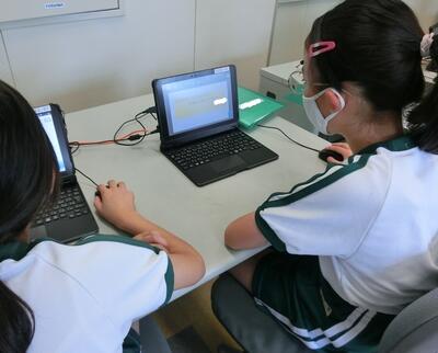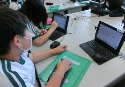 5年生は、インターネットの危険性について調べたことをまとめ、発表するためのプレゼンテーションを作成していました。