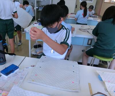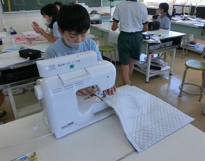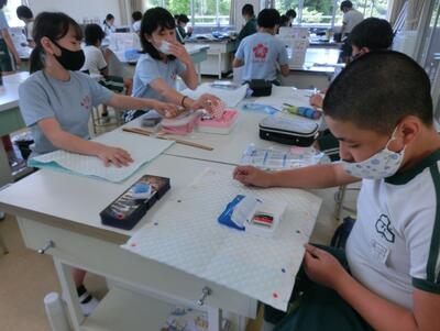 6年生は、家庭科でトートバッグを作っていました。