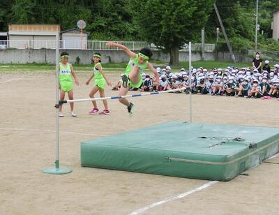 今日は、6年生の校内陸上記録会が開かれました。昨年度から練習をしてきた成果を1~5年生や保護者の方々に見てもらいました。堂々としたすばらしい姿を披露することができました。