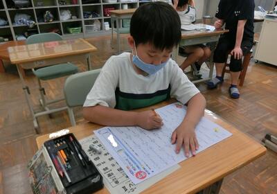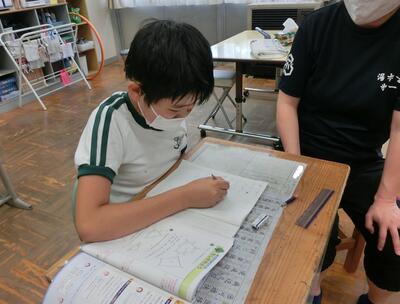 2年生は、夏休みに向けての準備をしていました。夏ドリル、一行日記などなど・・・