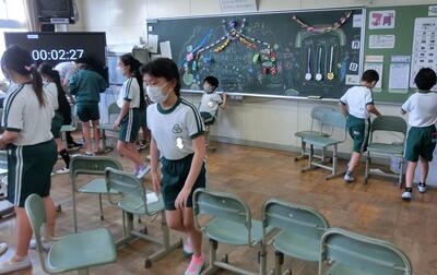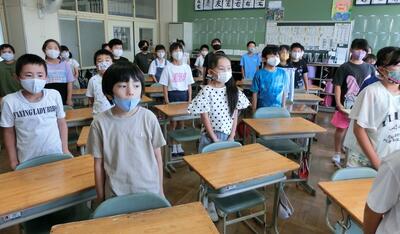 明日より8/31までは3校時(給食なし)での下校となります。密を避けるためにブロック毎の時間差での下校(1・2年11:20、3・4年11:25、5・6年11:30)とします。よろしくお願いいたします。