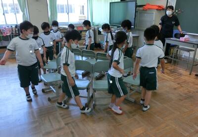 1年生は、お楽しみ会をしていました。いすとりゲームです。