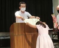 全校放送にて始業式を行い、「2学期は、一人一人が今まで以上に感染防止に気をつけながら、学習、心、健康・体力の3つの力を高めていきましょう」との話をしました。その後、たなばた展と吹奏楽の表彰を行いました。
