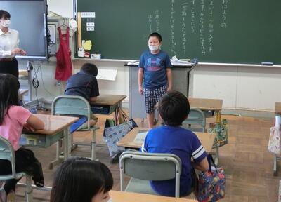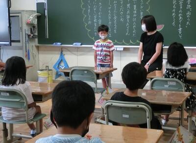 その後、各教室では、夏休みの思い出の発表をしたり、2学期のめあてを書いたりと活動をスタートさせていました。