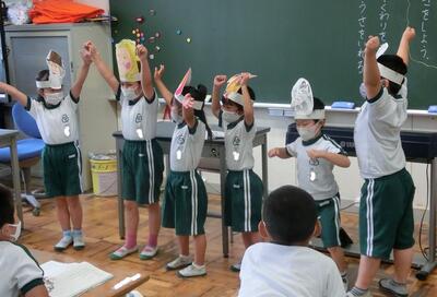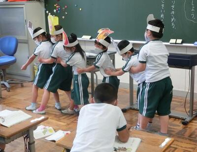 1年生は、国語で「おおきなかぶ」の劇をしていました。