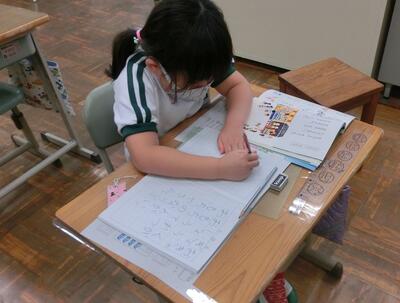 さはこ学級では、国語の学習。ひらがなをじょうずに書いています。