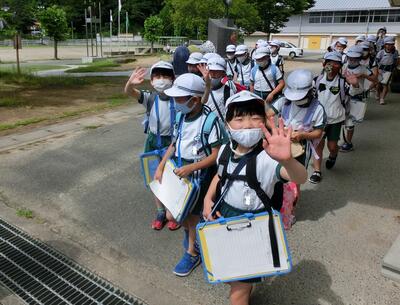 6年生は、1校時目から考古資料館へ見学学習へ出発していきました。