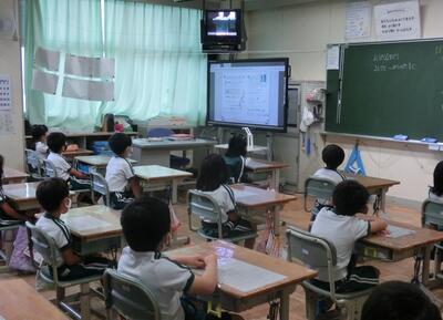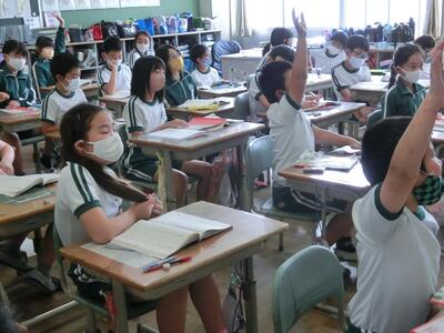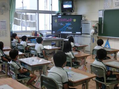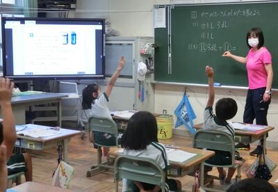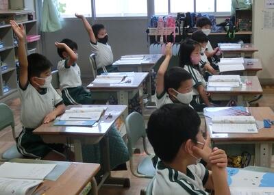 2年生は、算数の授業。L,dLの計算のしかたの学習でした。積極的に自分の考えを発表していました。
