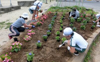 さはこ学級では、午後からみんなで協力して花植えをしました。とてもきれいになりました。
