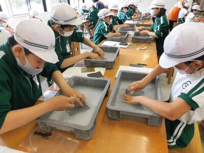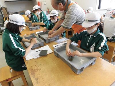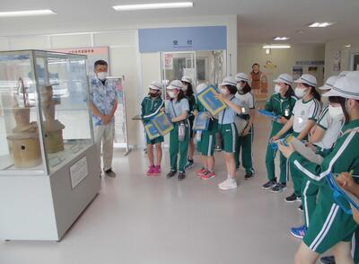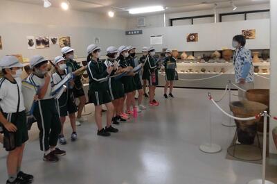 昨日の見学学習の様子です。6年生は考古資料館へ行ってきました。真剣に話を聞いてメモを取っています。