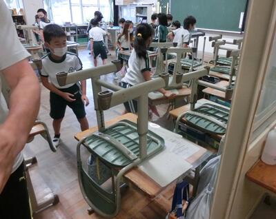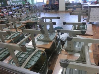 放送を聞き、すぐに机でバリケードを作ります。