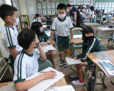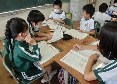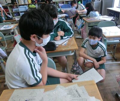 4年生は、国語で要約のしかたをグループで話し合っていました。