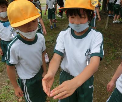 1年生は、生活科です。雨上がり後に出てくる生き物を探していました。