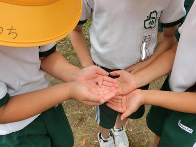 バッタやダンゴムシを見つけました。