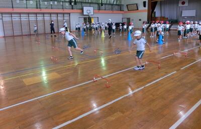 2年生は、体育でミニハードル走です。