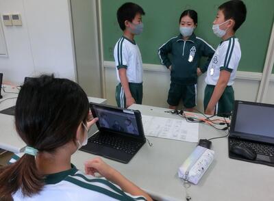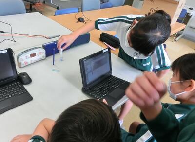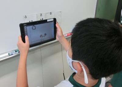 5年生は、タブレットを使って写真のコマ送り動画を作っていました。