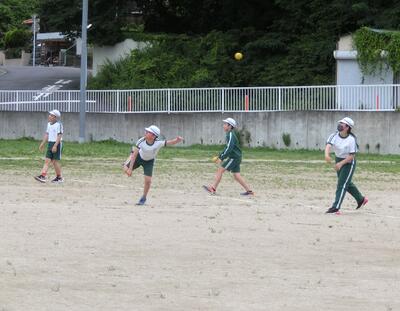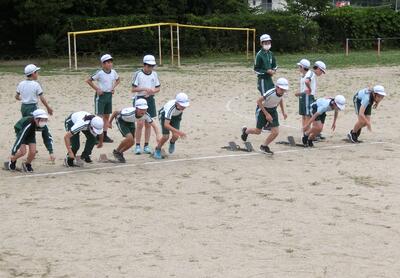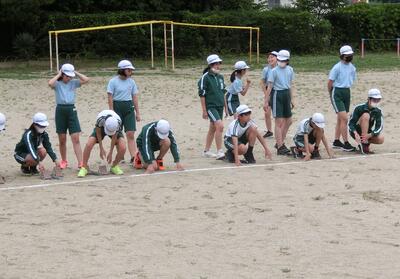 6年生は、来週の陸上記録会に向けて、種目別の練習を行っていました。