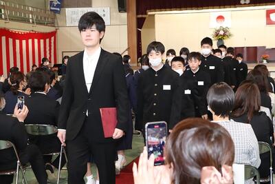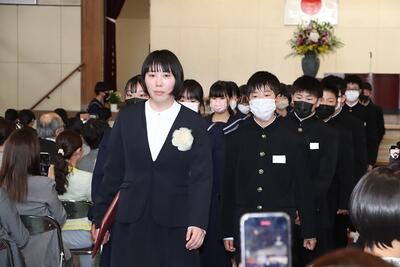 4月8日(月)午後1時から令和6年度の入学式を行いました。今年度の新入生は98名です。真新しい制服に身を包み、目をキラキラと輝かせて入学式へ臨んでいました。担任の先生から名前を呼ばれると大きな返事で応えていました。明日は2・3年生との対面式があります。まずは、中学校に早く慣れるように先生方もみんなで1年生を支援して行きたいと思います。
