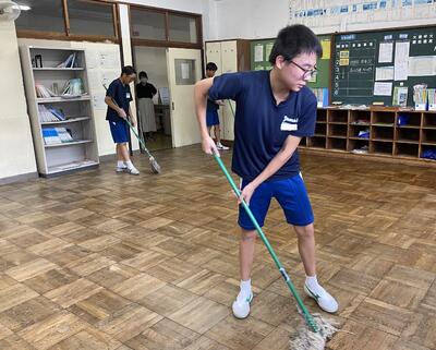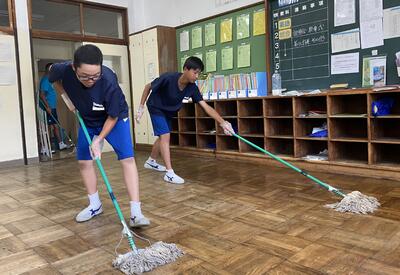 2024年8月8日 08時10分8月7日(水)、夏休み真っ只中ですが、教室のワックスがけを行いました。これは1学期末に教室のワックスがけボランティアの募集を呼びかけた生徒会本部の企画で実施されました。夏休みにもかかわらず集合した精鋭たちは、伝統ある一中の床を一生懸命にワックスがけをして磨いてくれました。お陰で床はピカピカに! 次にみんなが登校してくるときにびっくりする顔を見るのが楽しみですね。ボランティア活動に参加してくれた皆さん、ありがとうございました。今後、さらにそのボランティアスピリッツの輪が広がっていくと一中はもっとよい学校になると思います。お疲れ様でした。