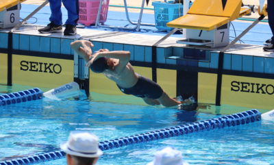 2024年8月11日 17時10分8月10日(土)・11日(日)に山形県山形市で行われた東北中体連水泳競技大会へ本校より1名の選手(2年男子)が出場しました。屋外のプールで行われた大会では、東北6県から県大会で勝ち抜いてきた選手により各種目の熱戦が繰り広げられました。本校選手は、男子200M背泳ぎ、男子100M背泳ぎに出場し、入賞は惜しくも逃しましたが次の大会へ大きな期待ができる立派な泳ぎでした。