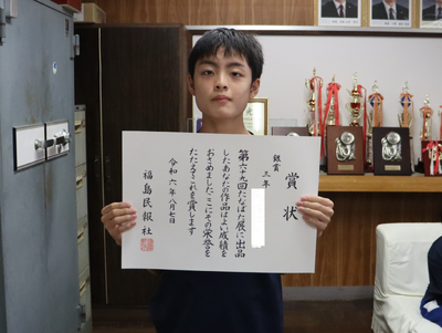 2024年9月10日 14時30分9月9日(月)、表彰9月分の1回目分を行いました。今回は、福島民報社主催のたなばた展、通信陸上県大会の表彰を行いました。なお、たなばた展については、福島民報本社で行われた表彰(同社新聞記事掲載済み)を除く、校内表彰のみを掲載しました。