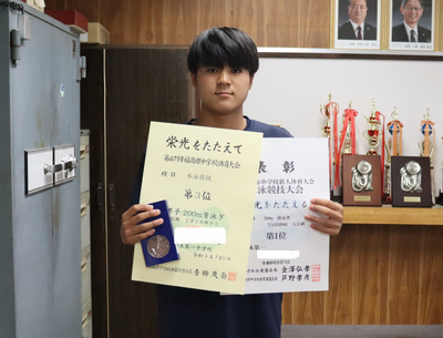 ○県中体連水泳競技大会 男子100m背泳ぎ 3位、男子200m背泳ぎ 3位(2年)