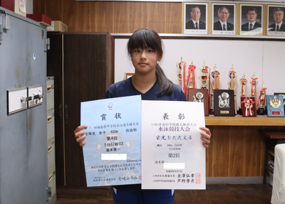 ○県水泳選手権大会 2年男子100m自由形 2位、2年女子400m自由形 4位