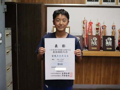 ○市中学校新人体育大会水泳競技 男子200m背泳ぎ 1位(大会新)(2年)、男子100m 1位(2年)、
