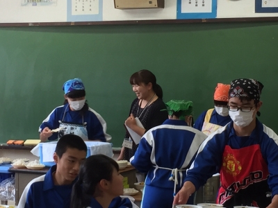 今日は、いつも学校の給食を作ってくださっている常磐学校給食共同調理場の皆さんが、本校の給食の様子を見にお出でになりました。運搬から準備、配膳、食事、後片付けの様子までご覧になりました。これからも、おいしい給食をよろしくお願いします。