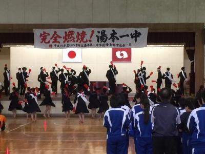 さあ、ここからは湯本一中恒例の応援団による熱い応援の始まりです。