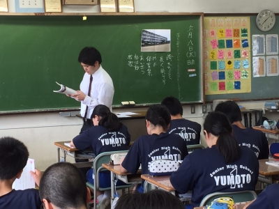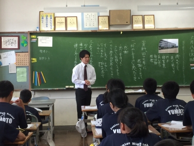 扱う内容が愛校心ということもあって、本校の卒業生である自分自身の中学校時代の経験談なども取り入れ、生徒の共感を得ていました。