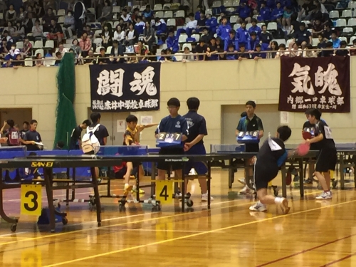 男子シングルス 吉田君 みごとなゲームで3:1で勝利 ベスト32に入りました 一歩でも上を目指して頑張れ