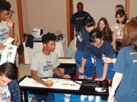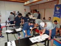 <アメリカチームとの交流活動 ~Shodo~> アメリカの選手は背も高く体格がよく、とても同じ中学生とは思えませんでした。