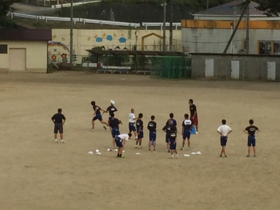 いよいよ駅伝の県大会です。校庭では最後の調整が行われていました。