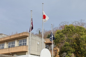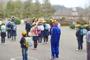 下校のためインターロッキングにいた児童、職員室にいた職員などが黙祷をしました。