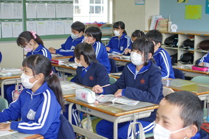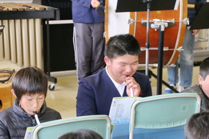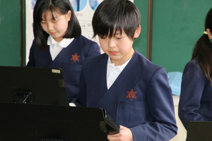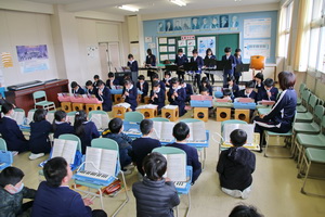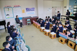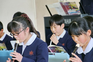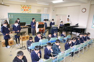 今日の6校時に5年生と6年生の音楽の交流会がありました。5年生、6年生ともに音楽は、教頭先生に習っていて、お互いの練習の成果を発表し合うとともに、それぞれの担任の先生などを招待して感謝の気持ちを伝えるものでした。