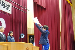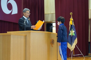 修了式では、各学年の児童がそれぞれ校長先生から修了証書をいただく練習をしました。