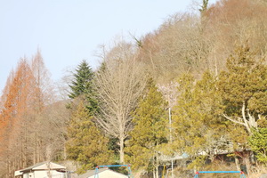また少し春に近づいたかと思われるような今日の朝、校庭に出てみると校舎の裏山に 桜が・・・。