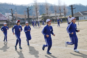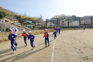 校庭に戻ると、いつものように子どもたちが体力作りのランニングをしていました。