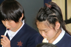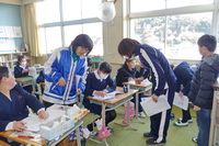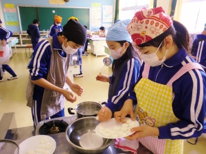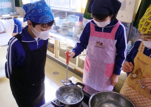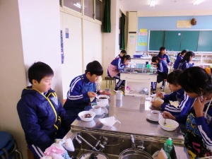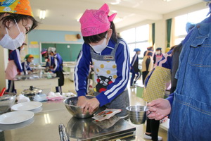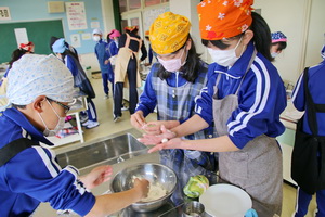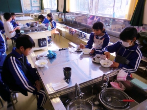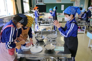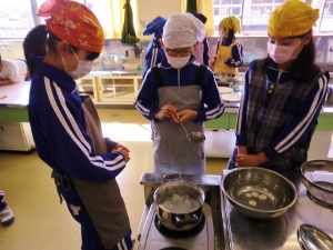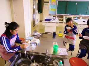 今日の1・2校時は職員室の上の家庭科室からにぎやかな声が・・・。