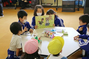 今日は、1年生とお隣の第二幼稚園の園児との交流会が行われました。