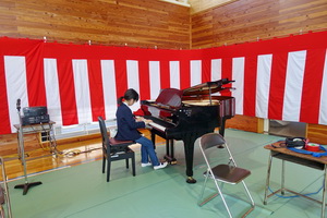昨日、会場の大まかな設定が終わっているので、本番の雰囲気がある中での練習になりました。